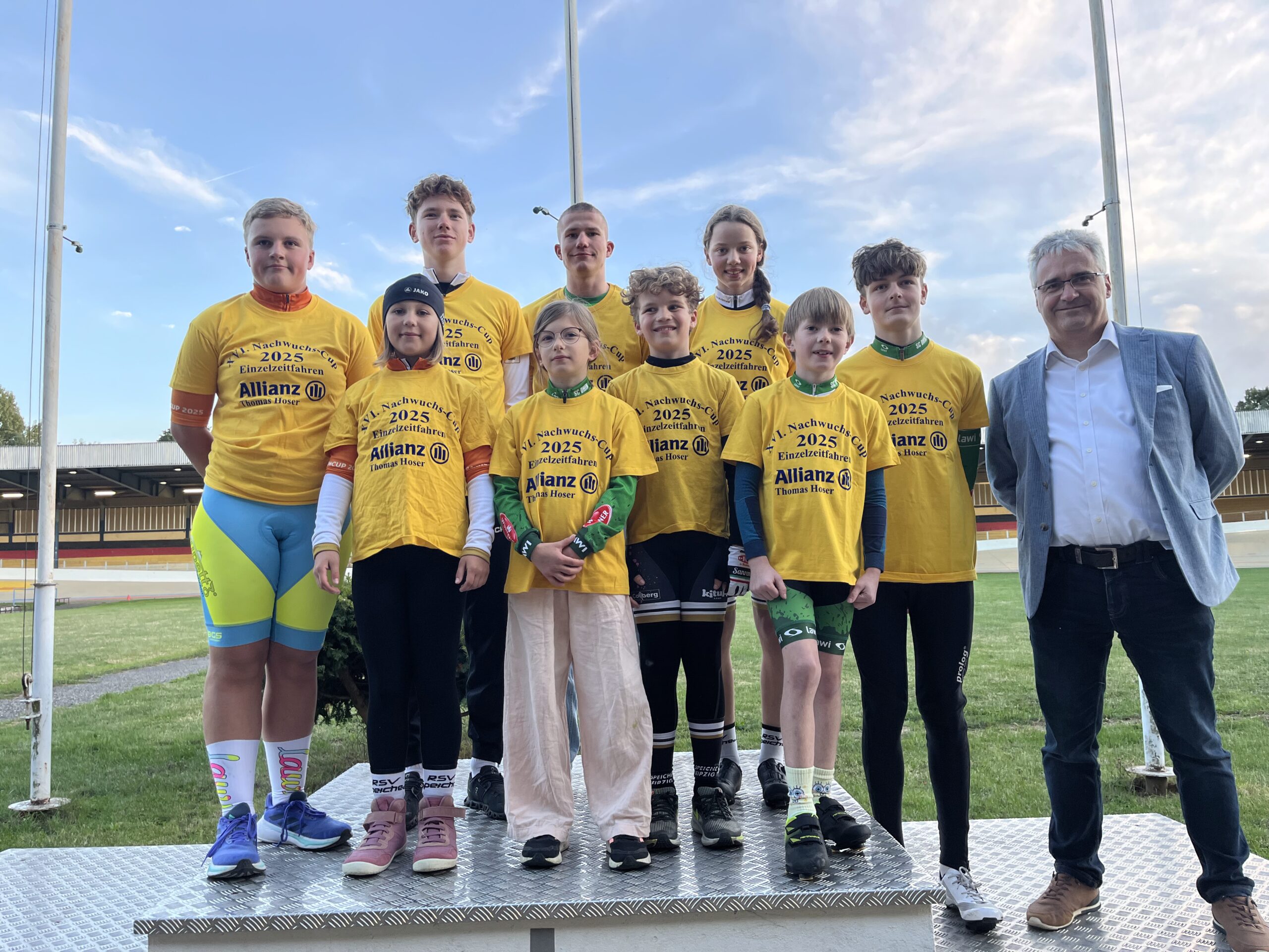 Mit guten Leistungen in allen Altersklassen im Zeitfahren ging der 16.Zeitfahrcup 2025 zu Ende. Die Gesamtsiegerehrung fand im Rahmen des Bahncup am Mittwoch, 24.September auf der Radrennbahn Leipzig statt. Die Ehrung wurde durch unseren langjährigen Sponsor Thomas Hoser Allianz Versicherung organisiert und durchgeführt. Unsere Sportlerinnen und Sportler waren dabei mit die erfolgreichsten. Sieger in ihrer Altersklasse wurden Oskar Wolf ( Hobby U9m ), Emma Petra ( Hobby U9w), Clara Brendel ( U15w), Hugo Wallinger ( U15m). Den 2.Platz erreichten Marie Luise Rosenkranz ( U17w) und Tyler Nehring ( U19m). Platz 3 erzielte Laurin Fidelius Rosenkranz ( U11m ).