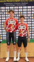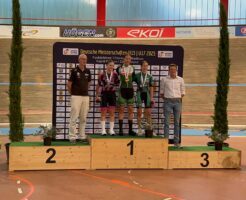 Mit 2 Deutschen Meistertiteln und einer Silbermedaille kehrten unsere Starter ,- innen von den Deutschen Meisterschaften aus Büttgen heim. Überragend dabei die Siege im Omnium der Schülerinnen U15 durch Clara Brendel. sie gewann 3 Disziplinen und wurde über 100m fliegend Zweite. Besonders ihre 2000m Zeit von 2:40 min, im ersten Jahr Schülerinnen, war sehr gut. Am Ende hatte sie 18 Punkte Vorsprung nach 4 Disziplinen. Auch unsere Jugendfahrer Oskar Doberschütz und Eero Gündel fuhren im Finale des Madison allen davon. Mit 2 anderen Teams aus Baden und NRW fuhren sie eine Runde auf das gesamte Feld heraus und gewannen 5 der 6 Wertungen im Spurt.