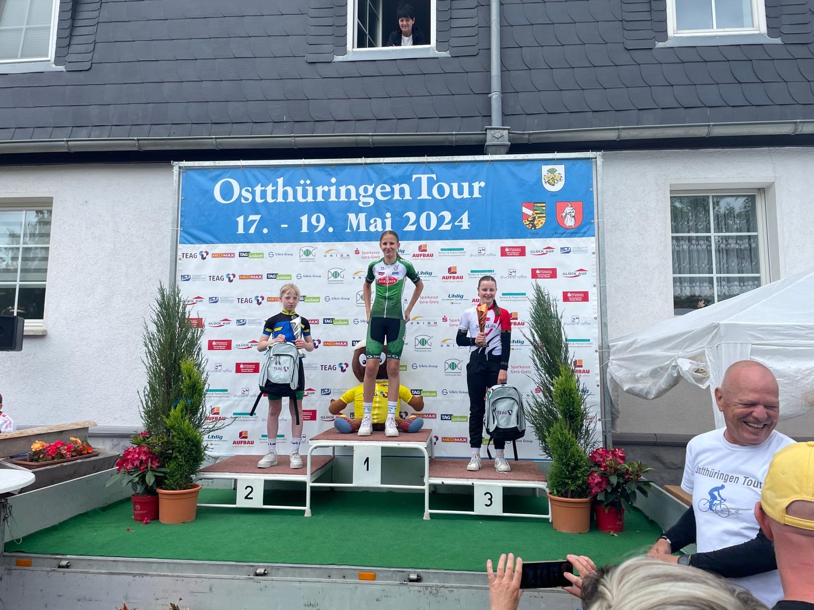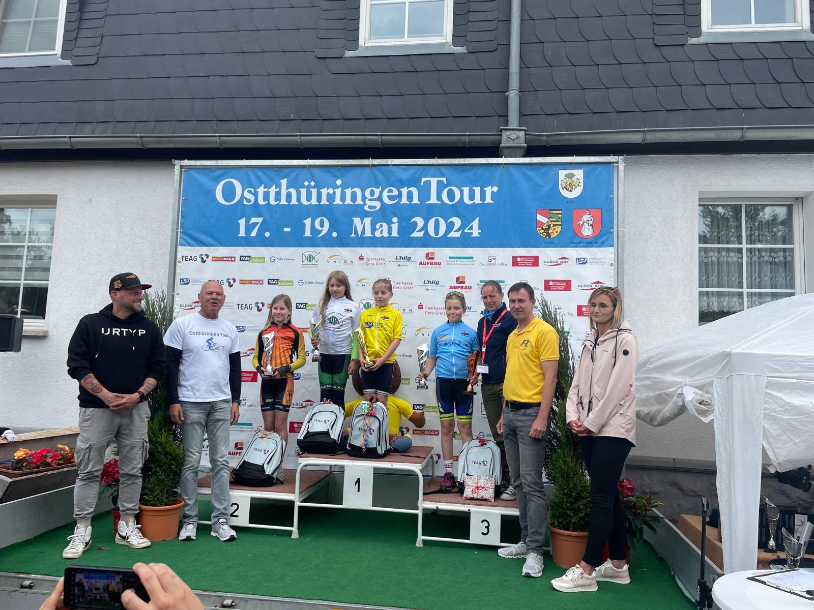 Wieder einmal erkämpften unsere jüngsten Radsportlerinnen und Radsportler bei der Ostthüringen-Tour 2024 vordere Platzierungen. Clara Brendel wurde ihrer Favoritenrolle gerecht und gewann alle 4 Rennen und die Gesamtwertung in der Altersklasse U13 weiblich. Mit einer großen kämpferischen Leistung gewann Johanna Weimann in der AK U11 weiblich das weiße Trikot der besten Nachwuchsfahrerin. Hugo Wallinger belegte in der Altersklasse U13 männlich unter 100 Startern einen hervorragenden 3.Platz in der Gesamtwertung. Auch unsere jüngsten Starter Helena Buhl und Hugo Schreiber bei den Fette Reifen fuhren sehr gut. Helena gewann 2 Rennen, Hugo belegte Platz 3.